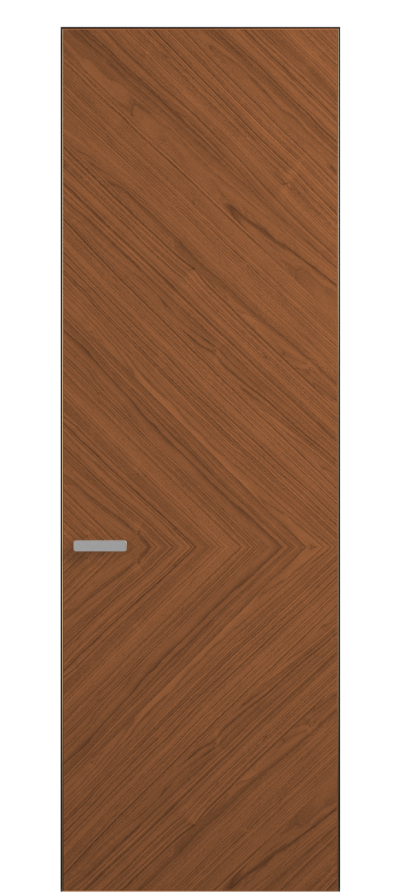 Полотно Rift в скрытом алюминиевом коробе становится полноценным элементом декора. В коллекции представлено 9 моделей дверей в высоте до 3 метров. Рисунок раскладки шпона варьируется от простого до сложного. «Рубашка» для каждого полотна подбирается вручную по цвету, текстуре и фактуре.