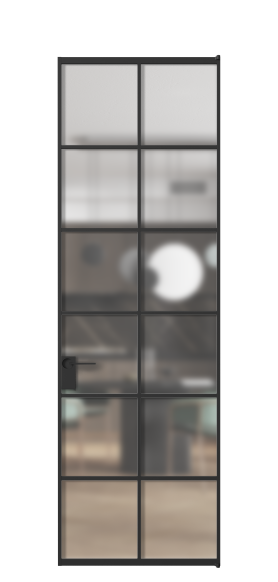Каждая дверь изготавливается индивидуально по точным замерам*. Возможная ширина двери 600–950 мм с шагом 50 мм. Высота двери — от 2000–3000 мм с шагом 10 мм. Доступно решение «дверь в потолок».